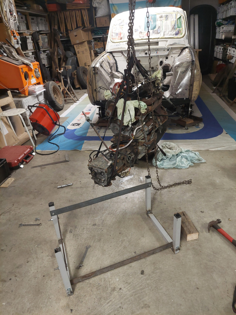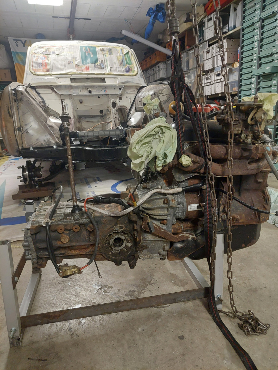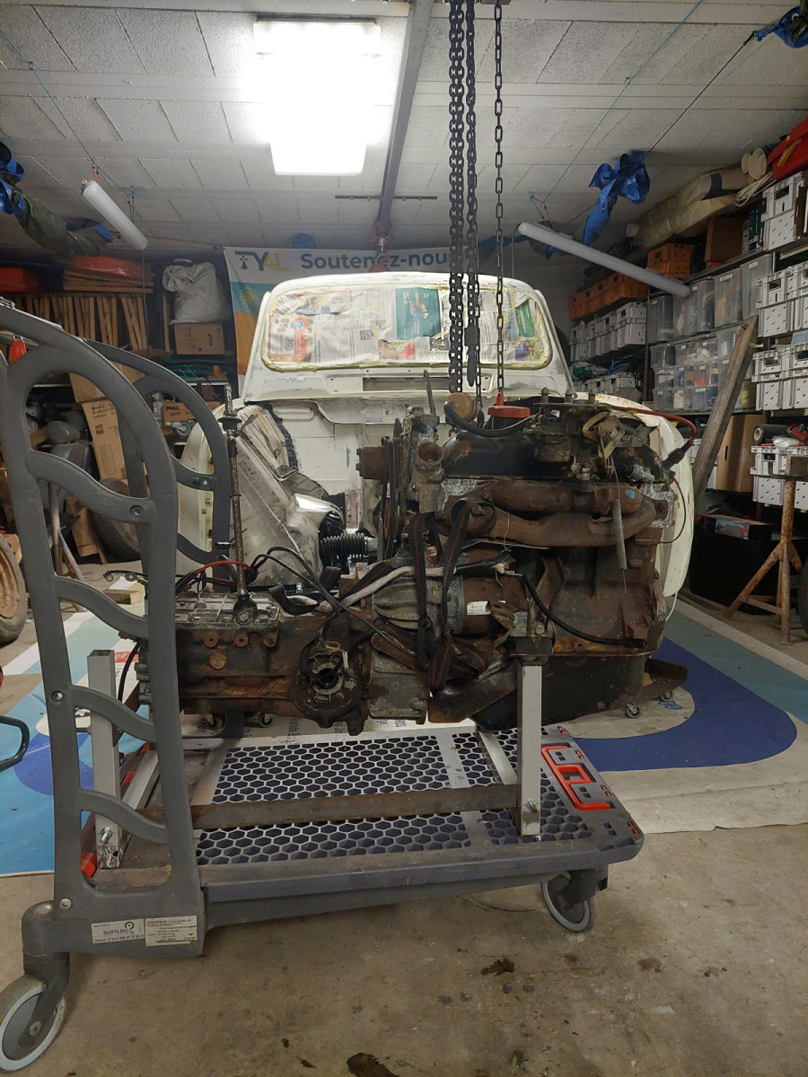 Repose du moteur Cléon dans notre 4L