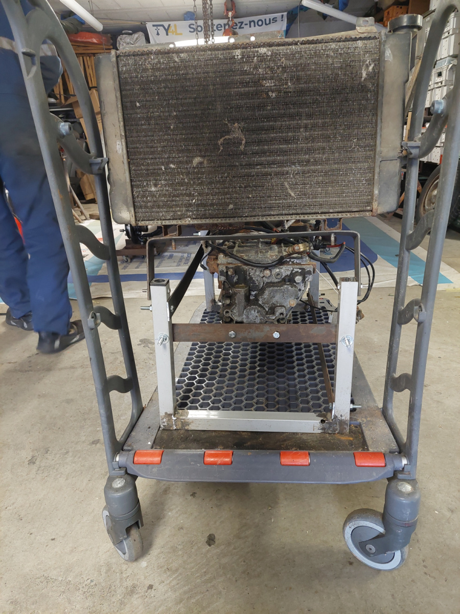 Monté sur son chariot, le moteur devient totalement autonome… et démarre parfaitement 🔥