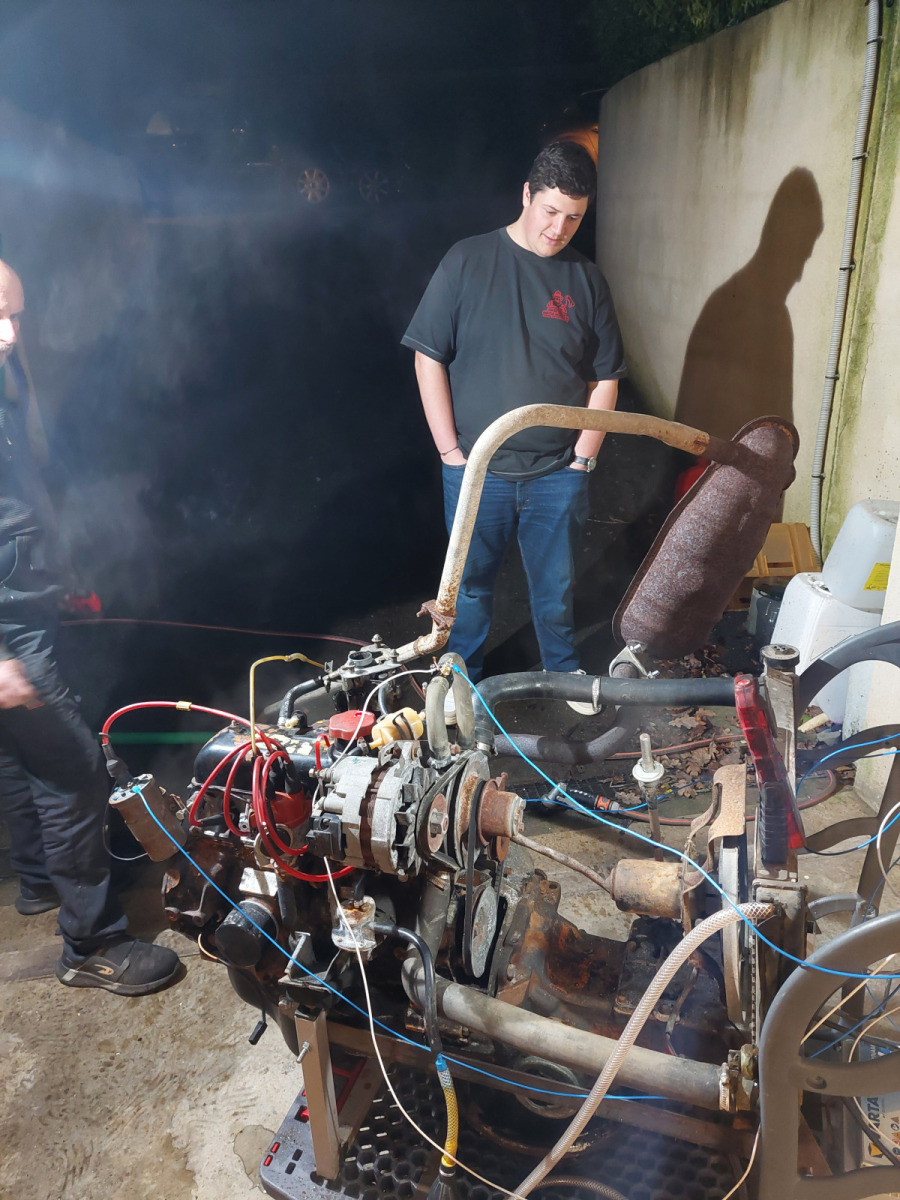 Contrairement à une restauration classique où l’on démonte directement, nous avons choisi une approche différente : faire tourner le moteur un maximum avant ouverture